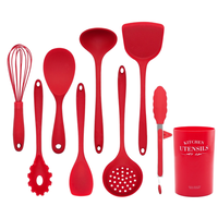 Juego de espátula de silicona antiadherente de 8 piezas, herramienta de cocina de mango largo para el hogar, Cubo de almacenamiento de utensilios de cocina